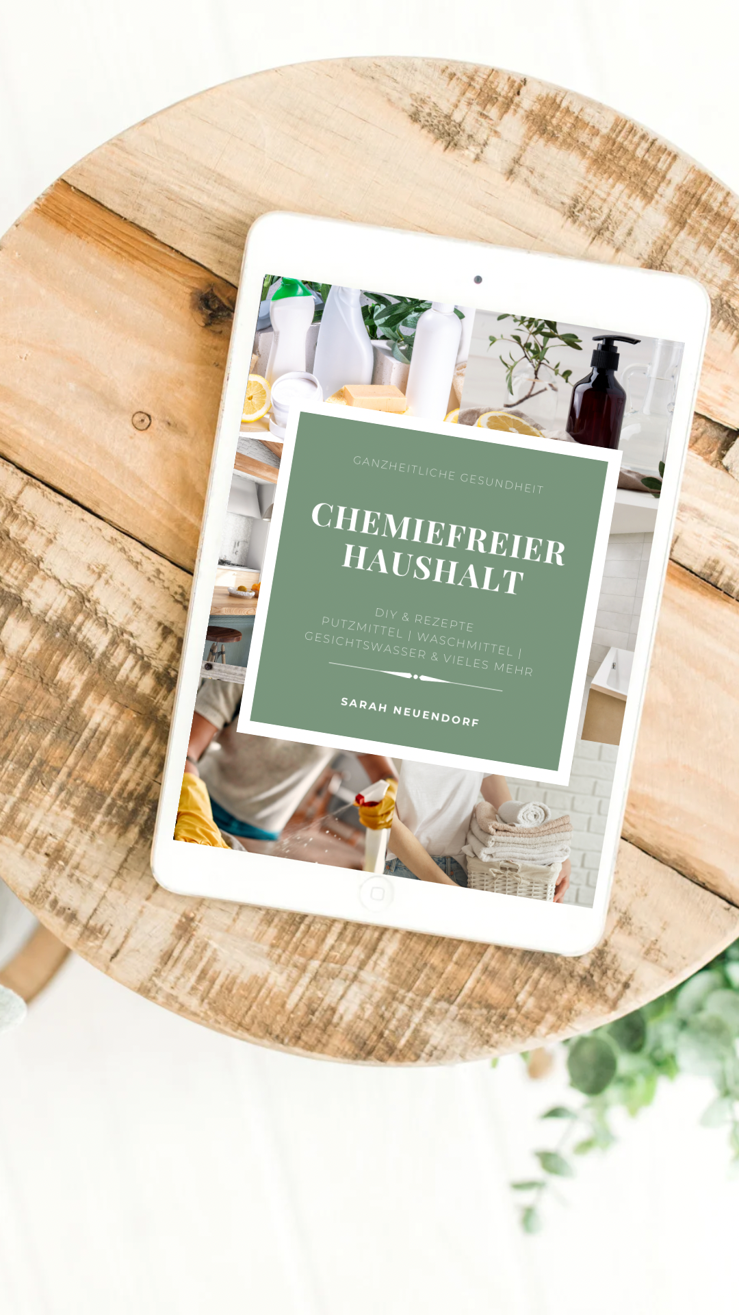 Mit dem 33 Seitigen E-Book Chemiefreier Haushalt erfährst du, wie einfach es ist, dein Zuhause von schädlichen Chemikalien zu befreien. Entdecke natürliche, effektive Rezepte für Reinigungsmittel, die deine Gesundheit schützen und gleichzeitig die Umwelt schonen.